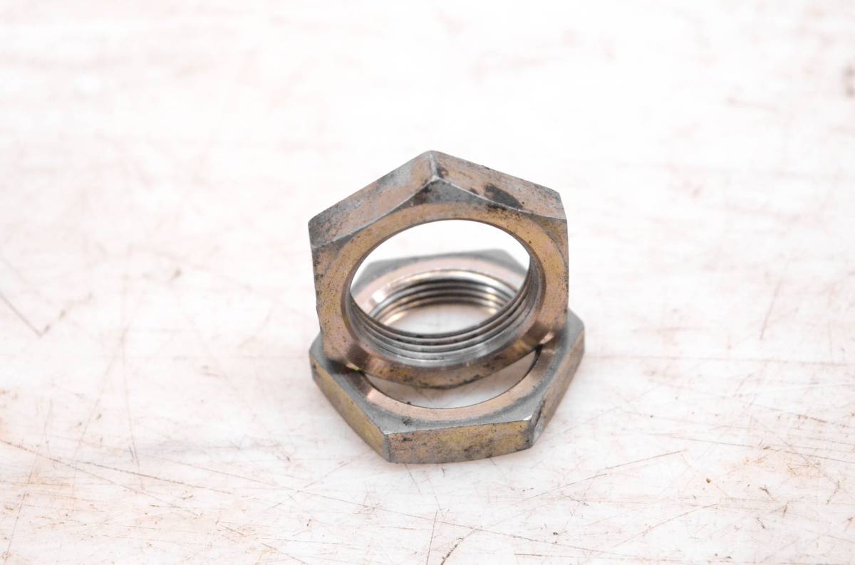 Axle nuts are in good condition. Threads are straight. Finish has light wear. Comes as pictured. Was removed from a 2005 Suzuki Quadsport 80 2x4 LT80.
