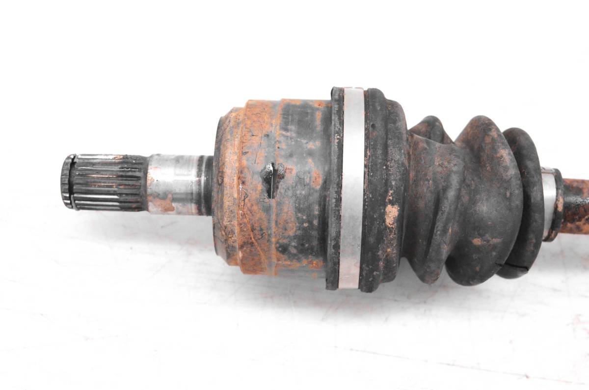 Axle is in good condition. Splines and threads are straight, has one ripped boot. Comes as pictured. Was removed from a 1997 Kawasaki Prairie 400 4x4 KVF400.
