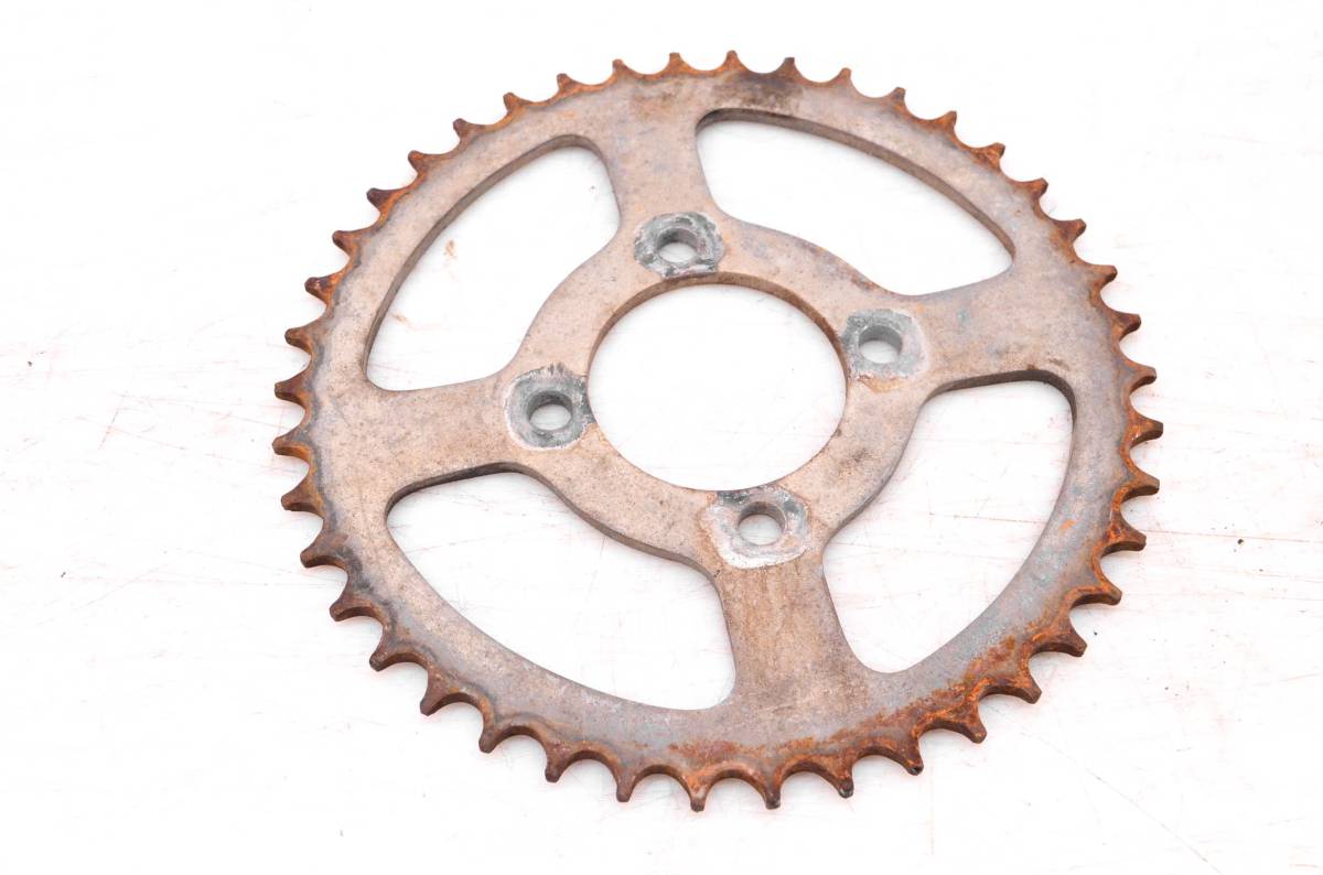 Sprocket is straight and in good condition. Teeth have light wear. Comes as pictured. Was removed from a 1986 Suzuki LT250R 2x4 Quadracer 250.