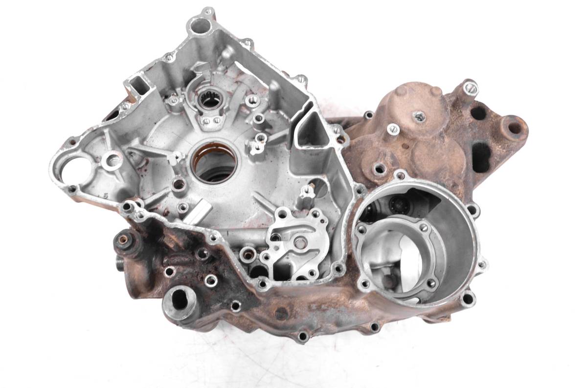 Crankcase is in good condition with no cracks or repairs. One bolt mouting hole is ovaled out. Finish has light wear. Bearings are good. Comes as pictured. Was removed from a running 2004 Suzuki Twin Peaks 700 4x4 LTV700F with 3967 miles and 542 hours.