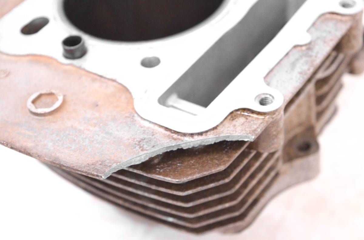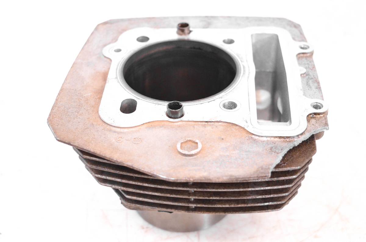 Cylinder is in fair condition. One air cooling fin has a piece broken off. Bore has light wear, could use a ball hone. Bore measures 76mm. Comes as pictured. Was removed from a 2000 Kawasaki Prairie 300 2x4 KVF300.