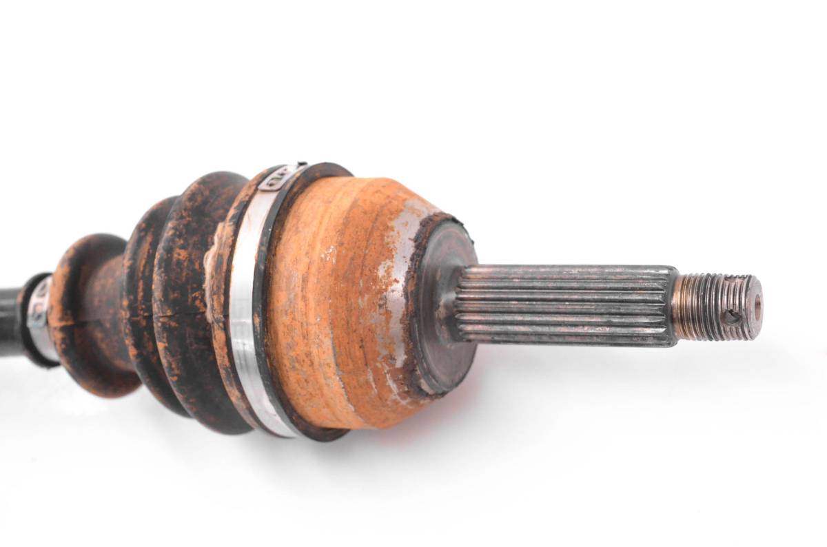 Axle is in good condition. Splines and threads are straight, boots are not ripped. Comes as pictured. Was removed from a running 2014 Bobcat 3400 Diesel 4x4 and 2454 hours.