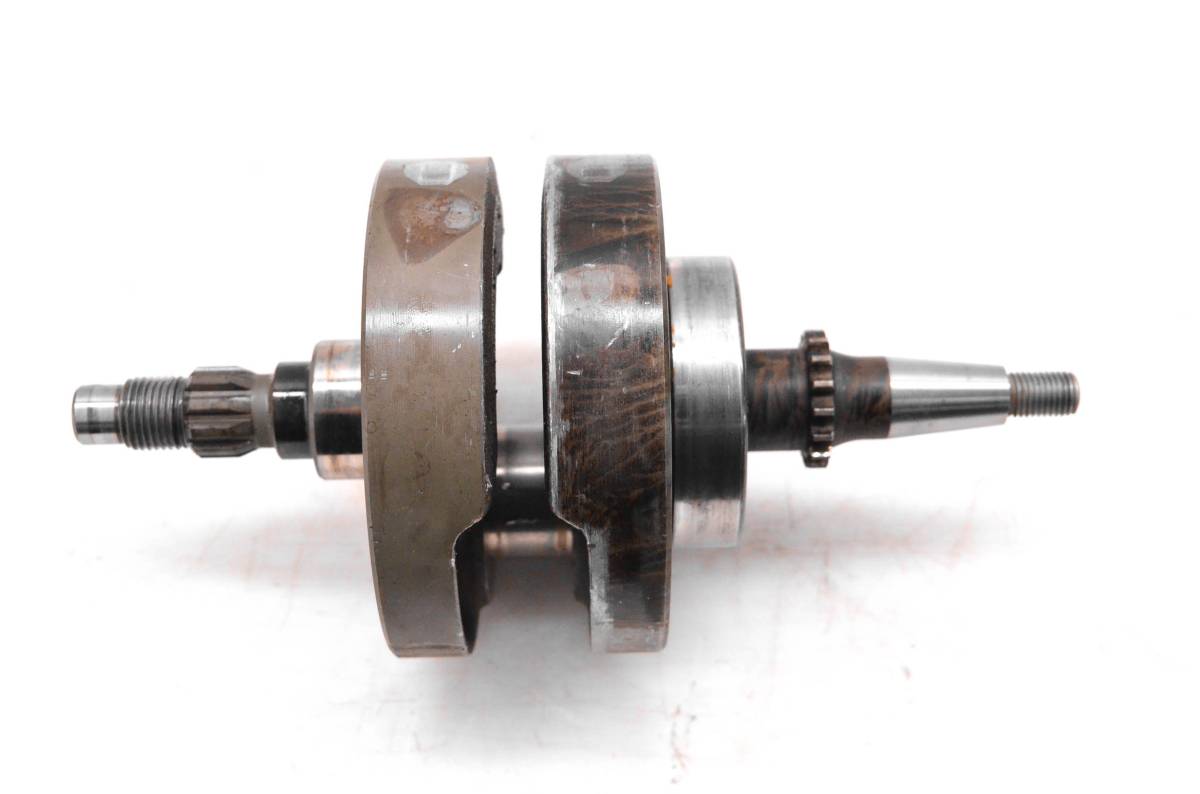 Crank is in poor condition. Rod has snapped off. Rod bearing journal is marred. Threads and ends are in good shape. Comes as pictured. Was removed from a 2007 Kawasaki KX250F.