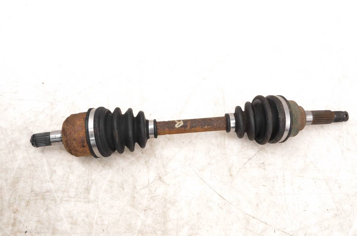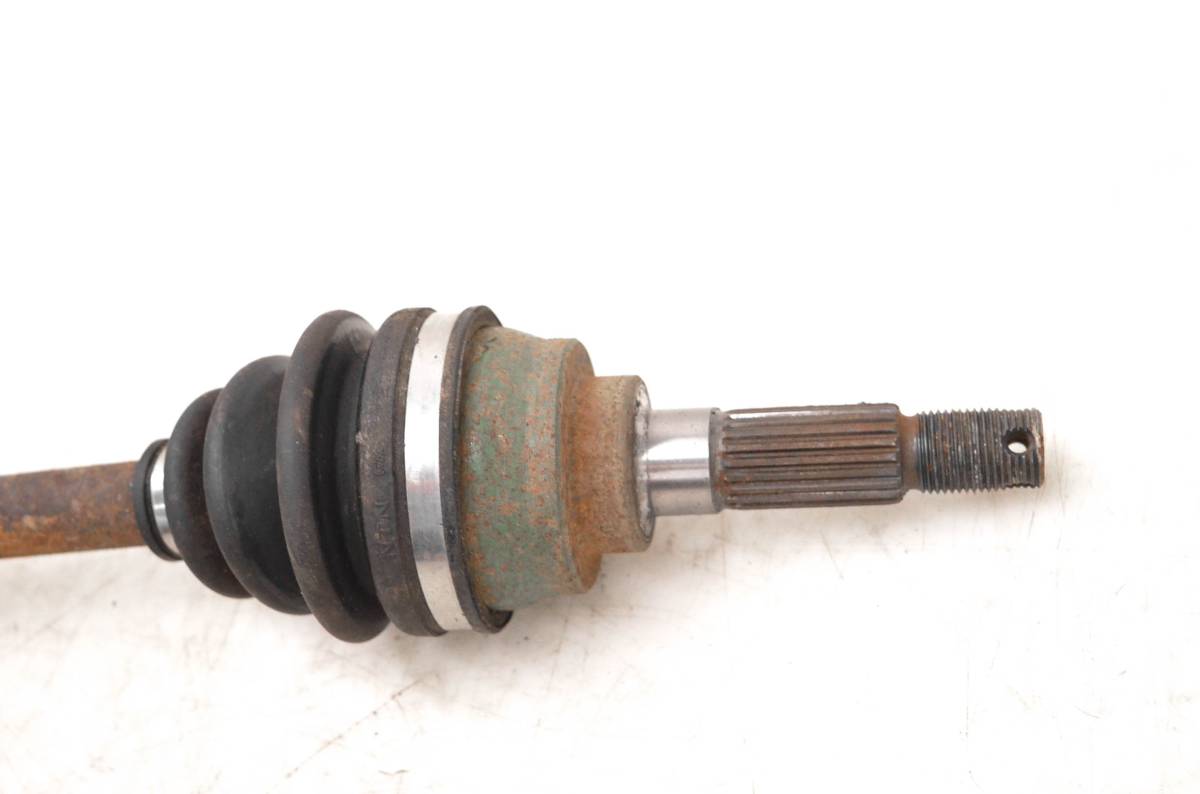 Axle is in good condition. Splines and threads are straight, boots are not ripped. Comes as pictured. Was removed from a running 1999 Kawasaki Prairie 400 4x4 KVF400.