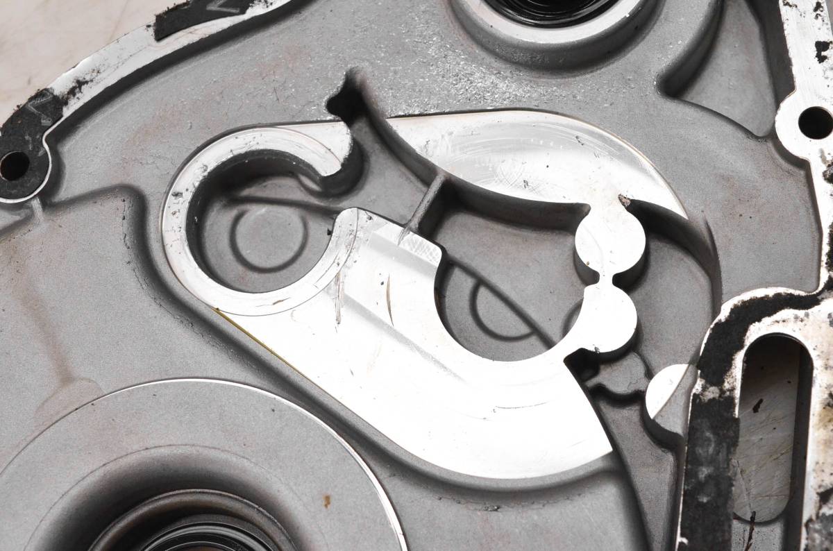 Cover is in fair condition with no cracks. Oil pump surface is marred. Finish has light wear. Comes as pictured. Was removed from a 2003 Polaris Sportsman 600 4x4 with 2952 miles and 421 hours.