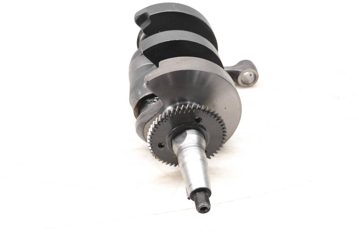 Crank is in poor condition. One rod and journal is snapped off and marred. Splines and threads are straight. Big end clearance is .356mm. Comes as pictured. Was removed from a 2002 Polaris Sportsman 700 4x4 with 922 miles and 118.3 hours.