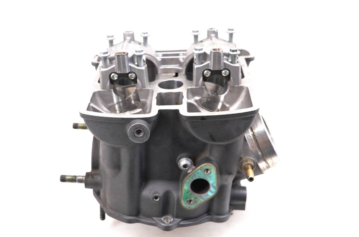 Cylinder head is in good condition. Valves and springs are included. Cam journals have some light scoring. Combustion chamber has some carbon build up. Comes as pictured. Was removed from a 2014 Aprilia Shiver 750.