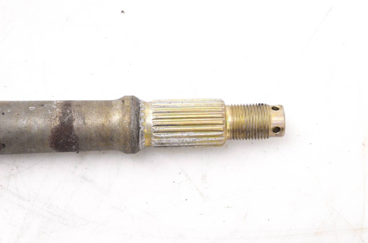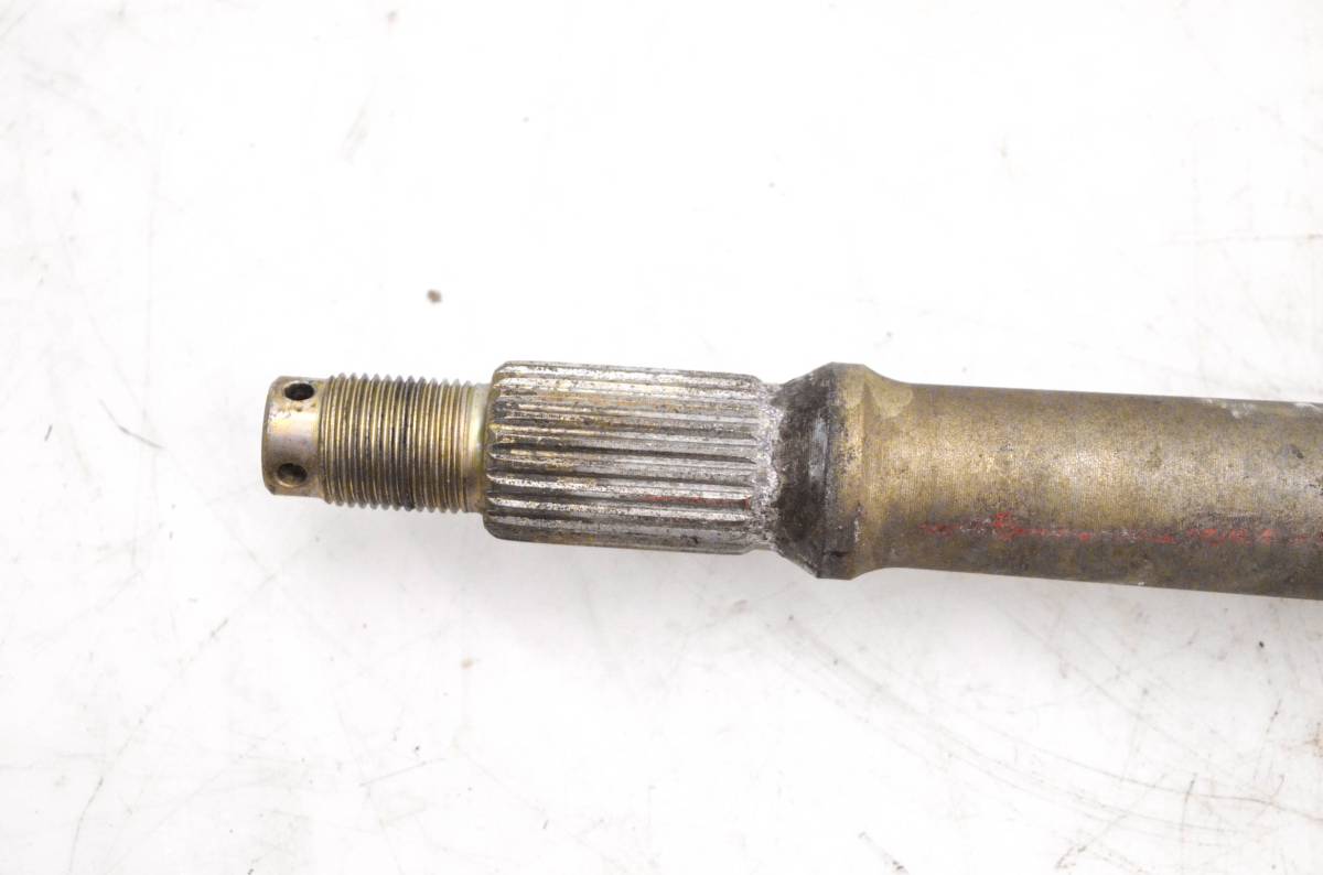 Axle is straight and in good condition. Finish has light wear. Splines and threads are straight. Comes as pictured. Was removed from a 1994 Polaris 300 4x4.