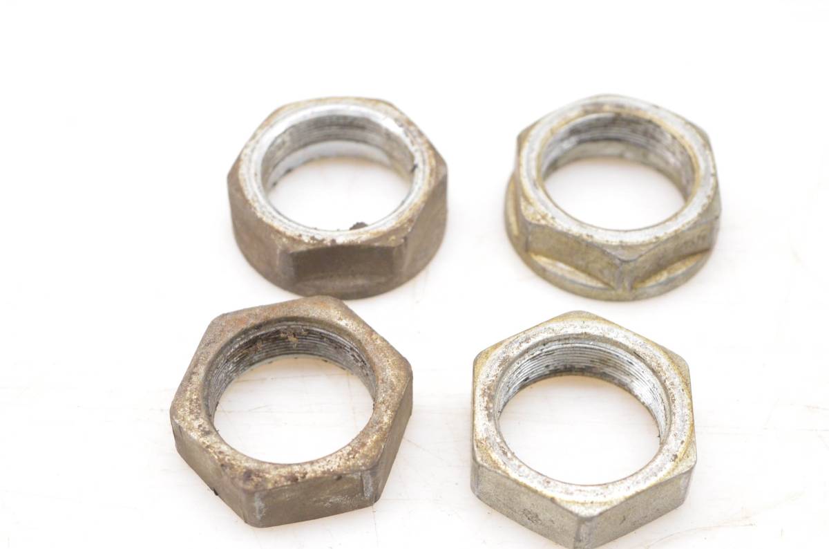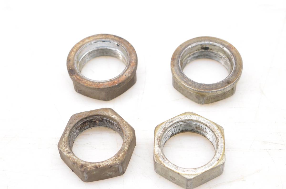 Axle nuts are in good condition. Threads are straight. Finish has light wear. Comes as pictured. Was removed from a 1988 Honda Fourtrax 300 2x4 TRX300.