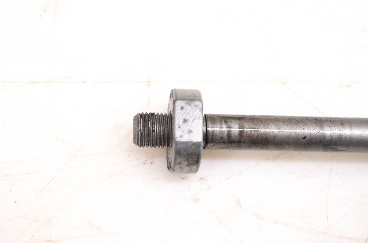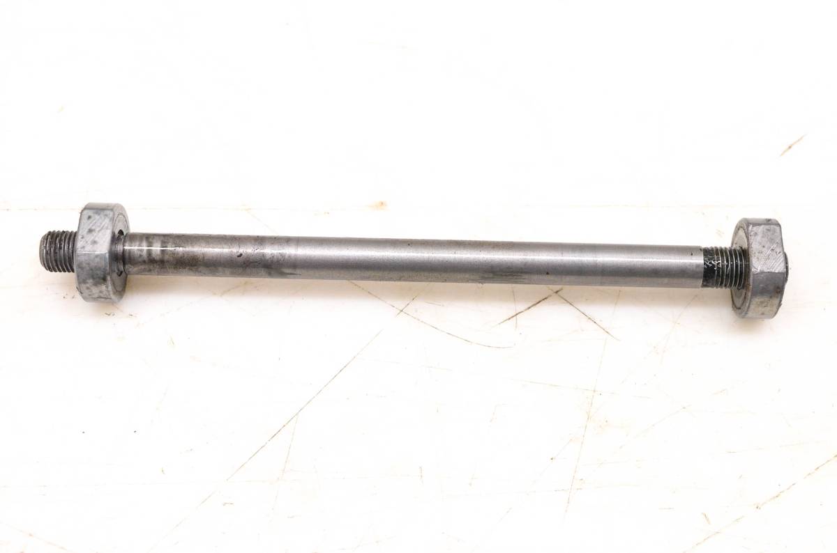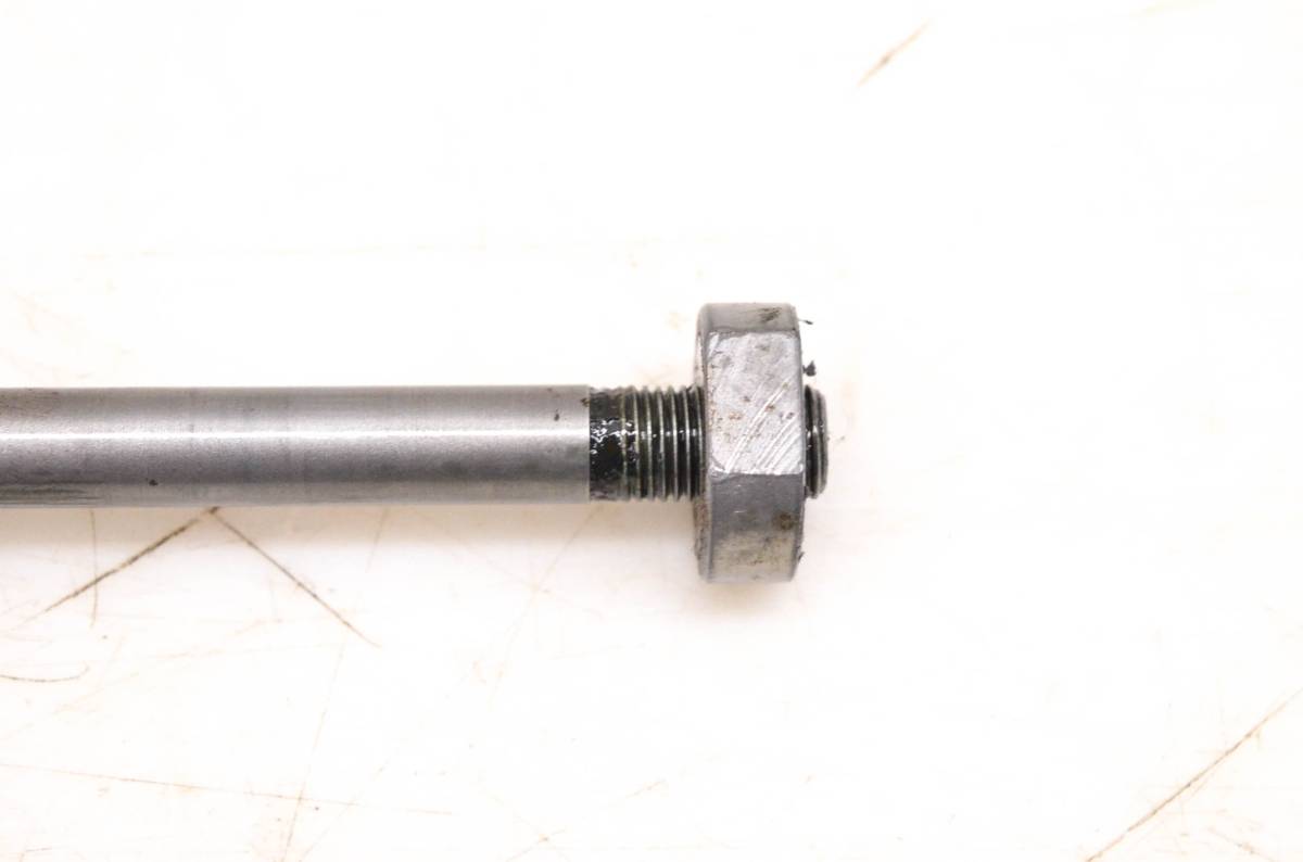 Axle is straight and in good condition. Finish has light wear. Splines and threads are straight. Comes as pictured. Was removed from a 1973 Suzuki Trailhopper 50 MT50 with 4 miles.