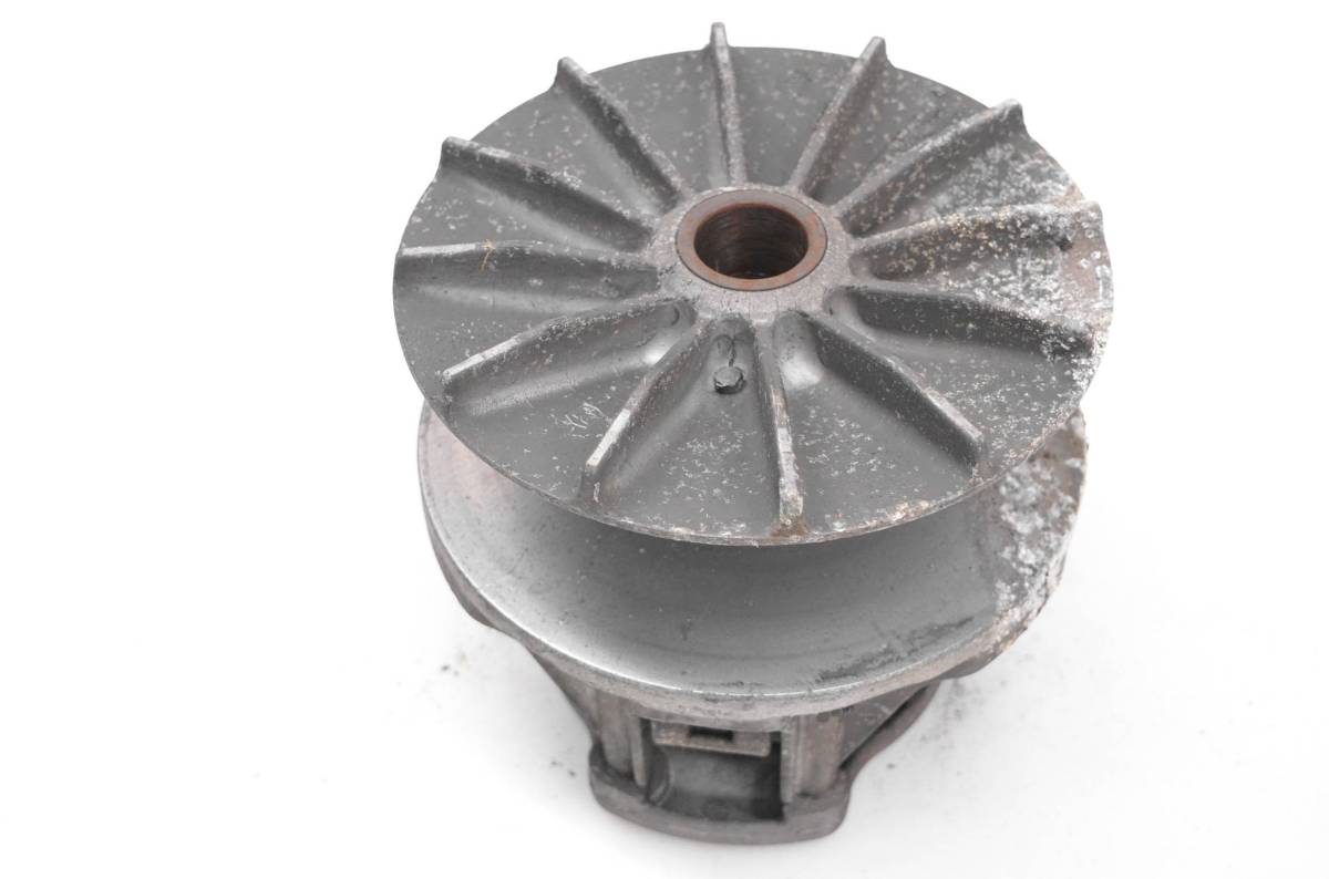 Clutch is in fair condition. Ramps and rollers have light wear, one ramp, and roller are sicky, from corrosion. Pulley sheaves have light wear. Could use a good clean, and some lubrication. Comes as pictured. Was removed from a 1997 Polaris Xpress 300 2x4.