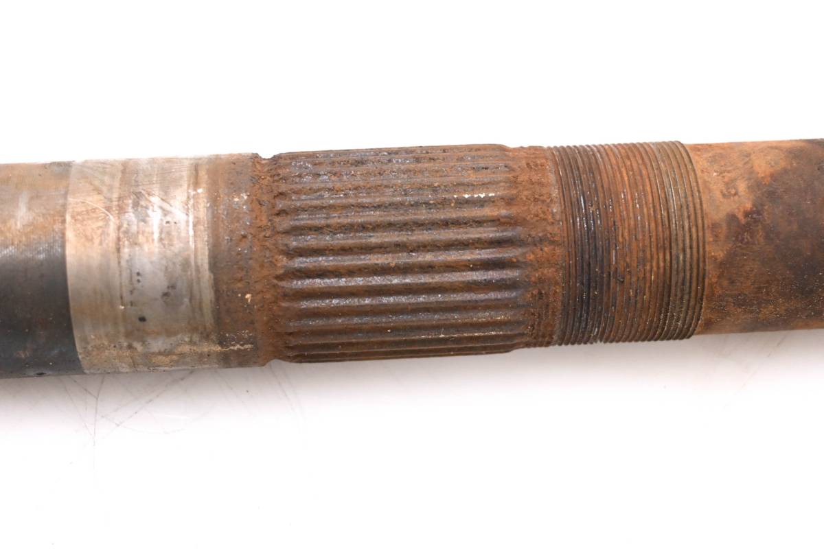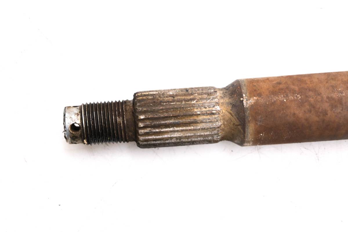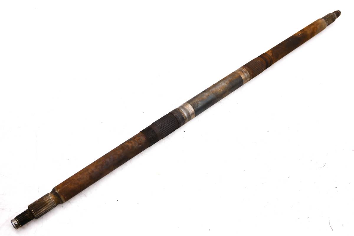 Axle is straight and in good condition. Finish has light wear. Splines and threads are straight. Comes as pictured. Was removed from a 1999 Polaris Scrambler 500 4x4.