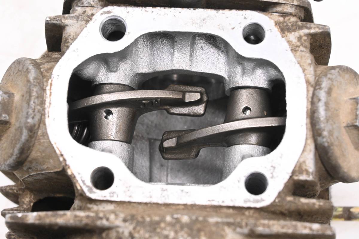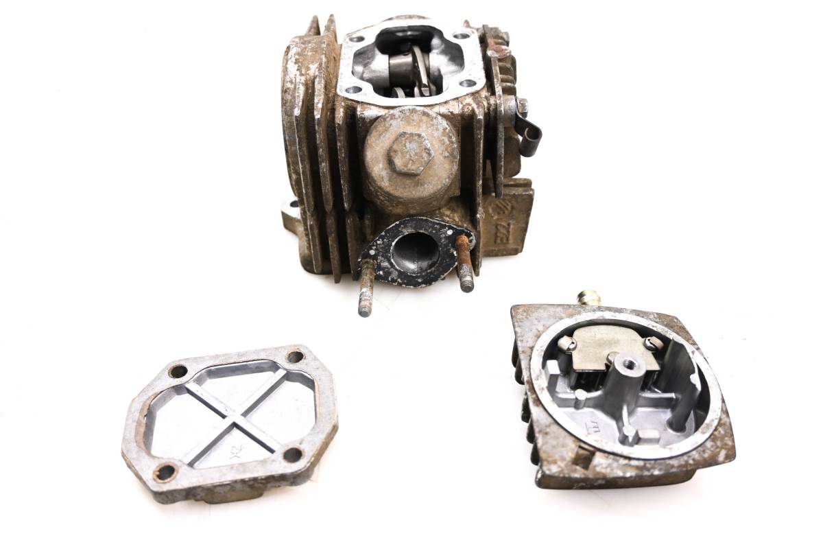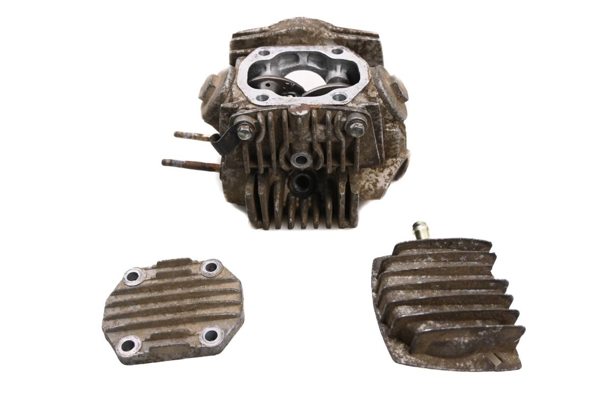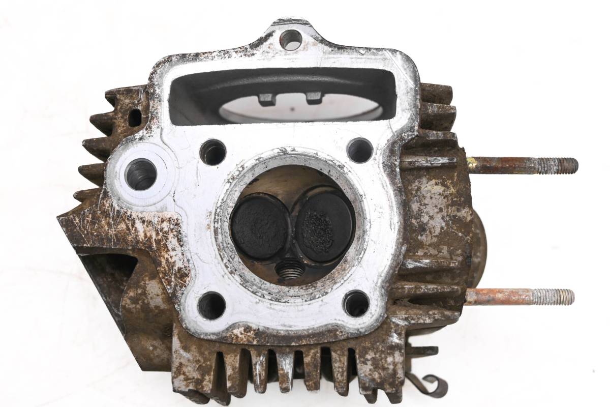 Cylinder head is in okay condition. Valves and springs are included. Cam journals are smooth. One rocker arm needs a new adjustment screw, threads are stripped. Combustion chamber has some carbon build up. Comes as pictured. Was removed from a 2007 Polaris Sportsman 90 2x4.