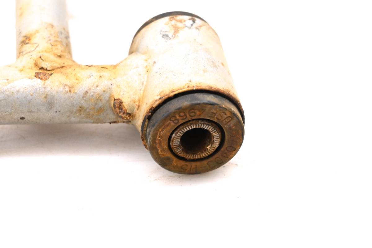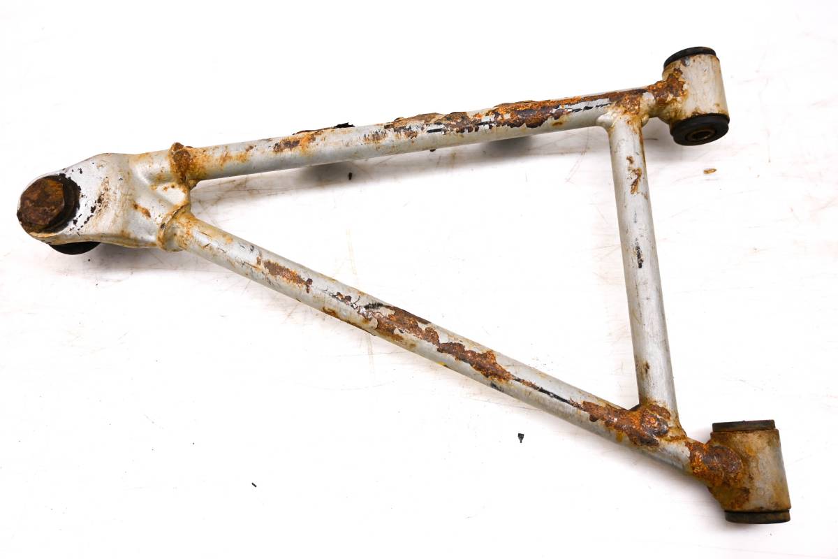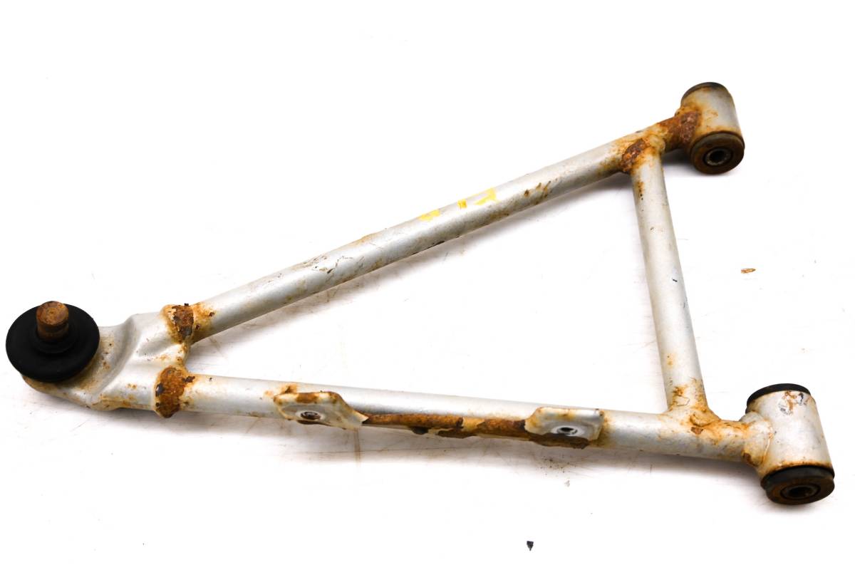 A-Arm is straight and in good condition. One bolt is snapped cv boot guard threads. Finish has light wear. Bushings are good. Comes as pictured. Was removed from a 2005 Arctic Cat 650 V2 4x4 with 2177 miles and 521 hours.