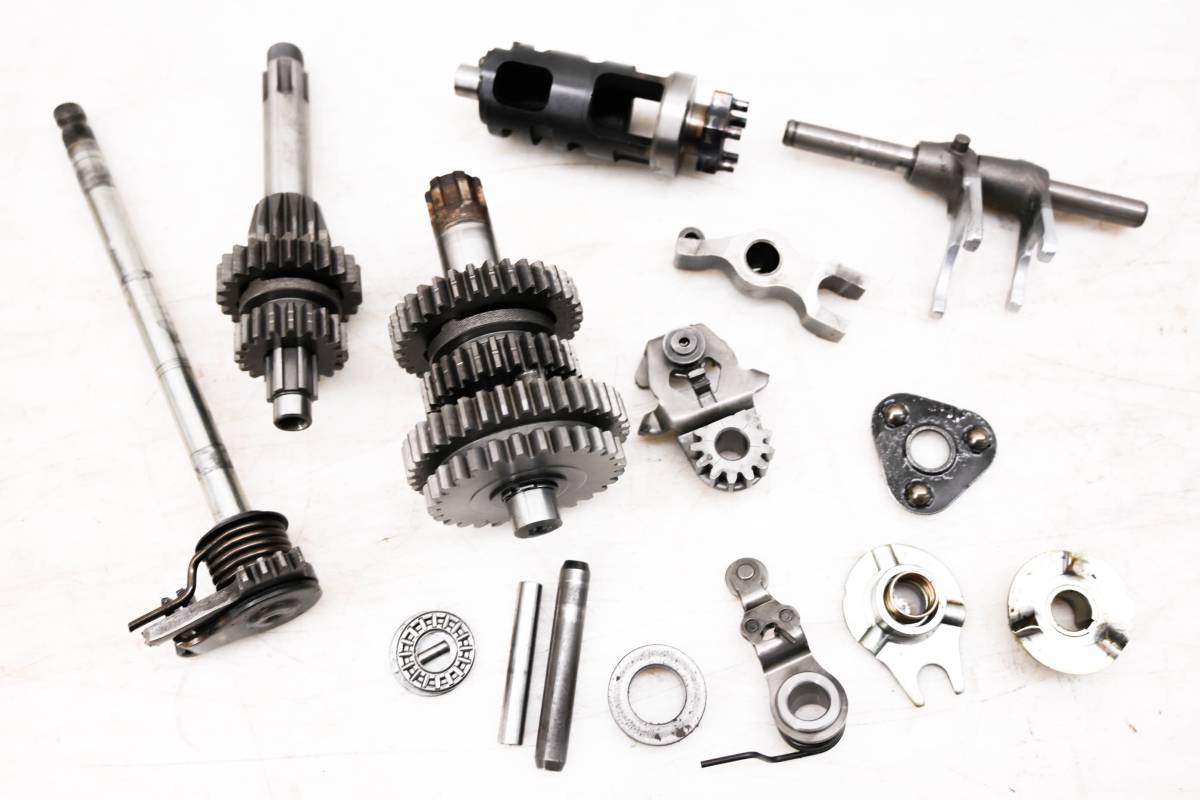 Transmission is in good condition. Gears and teeth have only light wear. Forks are straight. Comes as pictured. Was removed from a 2005 Yamaha TTR90E.