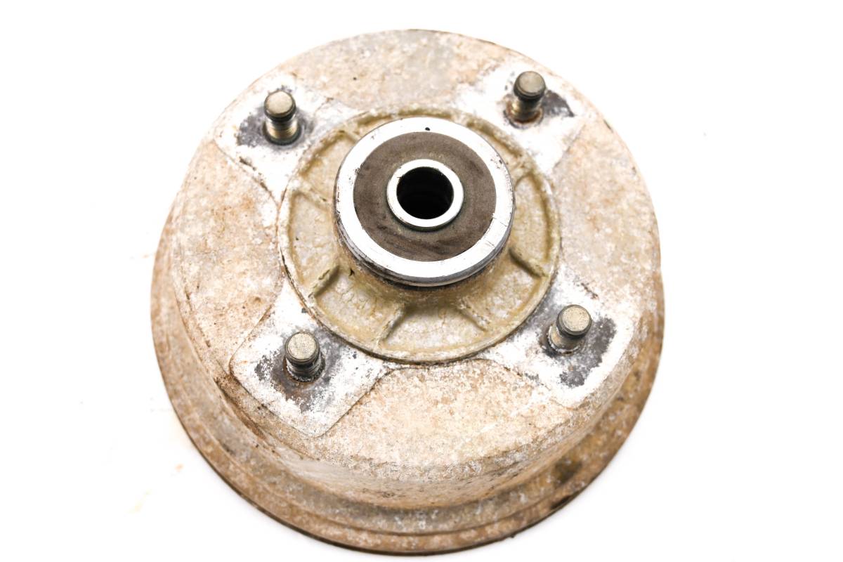 Brake drum is in good working condition with no cracks or repairs. Finish has light wear. Comes as pictured. Was removed from a 2001 Kawasaki Bayou 220 2x4 KLF220.