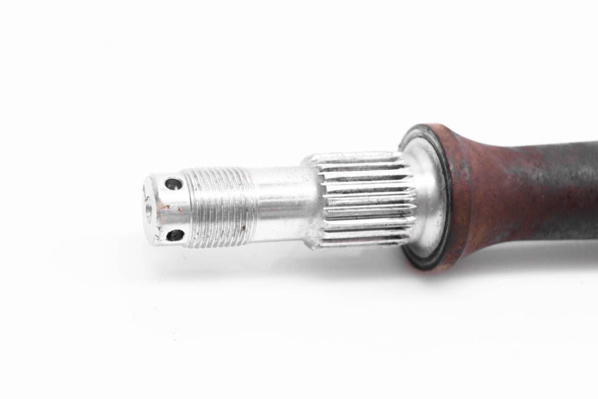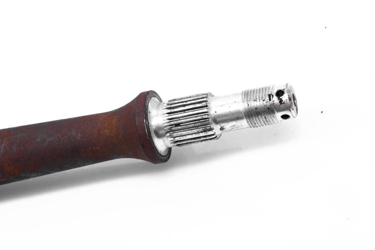 Axle is straight and in good condition. Finish has light wear. Splines and threads are straight. Comes as pictured. Was removed from a 2006 Kawasaki Prairie 360 4x4 KVF360.