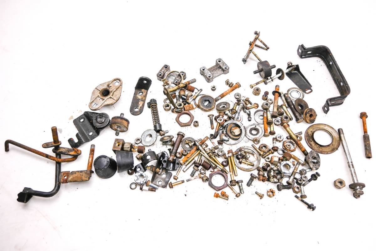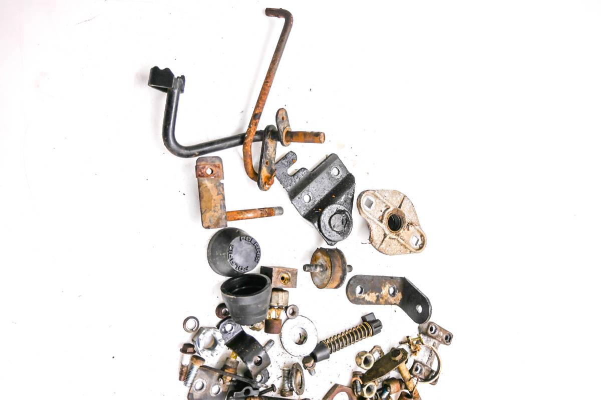 Hardware set includes all of the items pictured. Comes as pictured. Was removed from a 1995 Polaris Trail Boss 300 4x4.