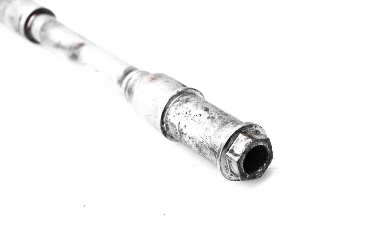 Axle is straight and in good condition. Finish has light wear. Splines and threads are straight. Comes as pictured. Was removed from a 1985 Kawasaki KX125.