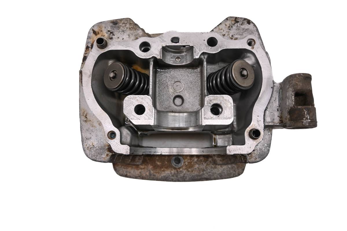 Cylinder head is in ok condition. Valves and springs are included. Cam journals are scored. Combustion chamber has some carbon build up. Wear near intake boot. Comes as pictured. Was removed from a 1984 Honda Fourtrax 200 2x4 TRX200.