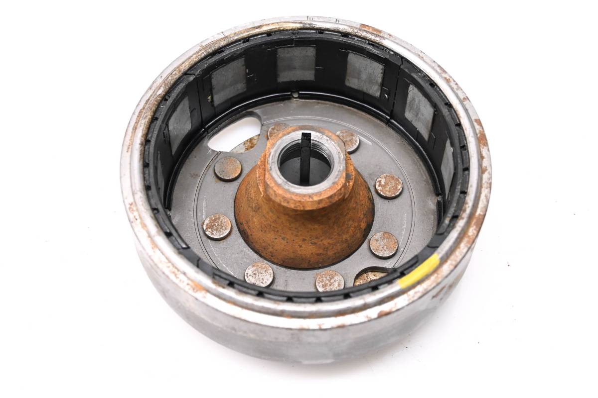 Flywheel is in good working condition. Finish has light wear from use, plastic has a slight crack. Comes as pictured. Was removed from a 1984 Kawasaki KL600A with 9145 miles.