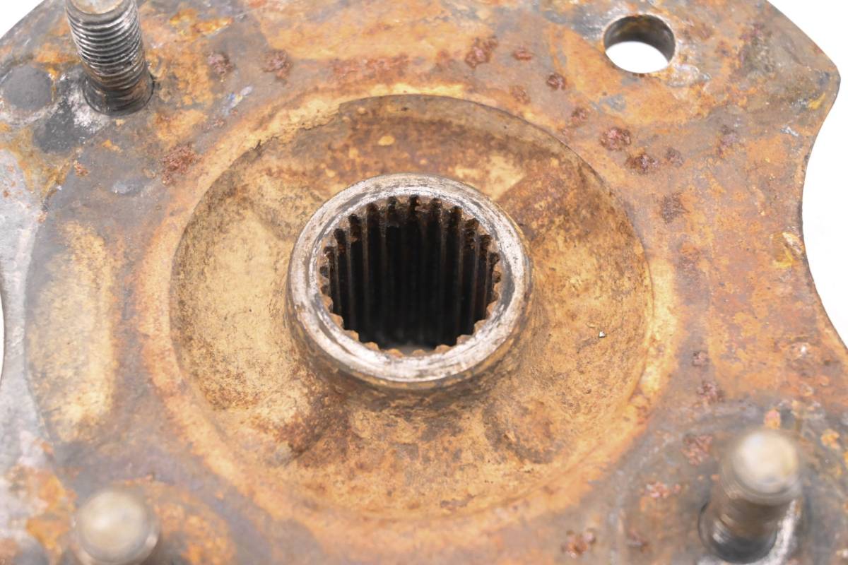 Hub is in ok condition. Finish has light wear. Splines and threads are straight. Missing one wheel stud. Comes as pictured. Was removed from a 1988 Honda Fourtrax 300 2x4 TRX300.