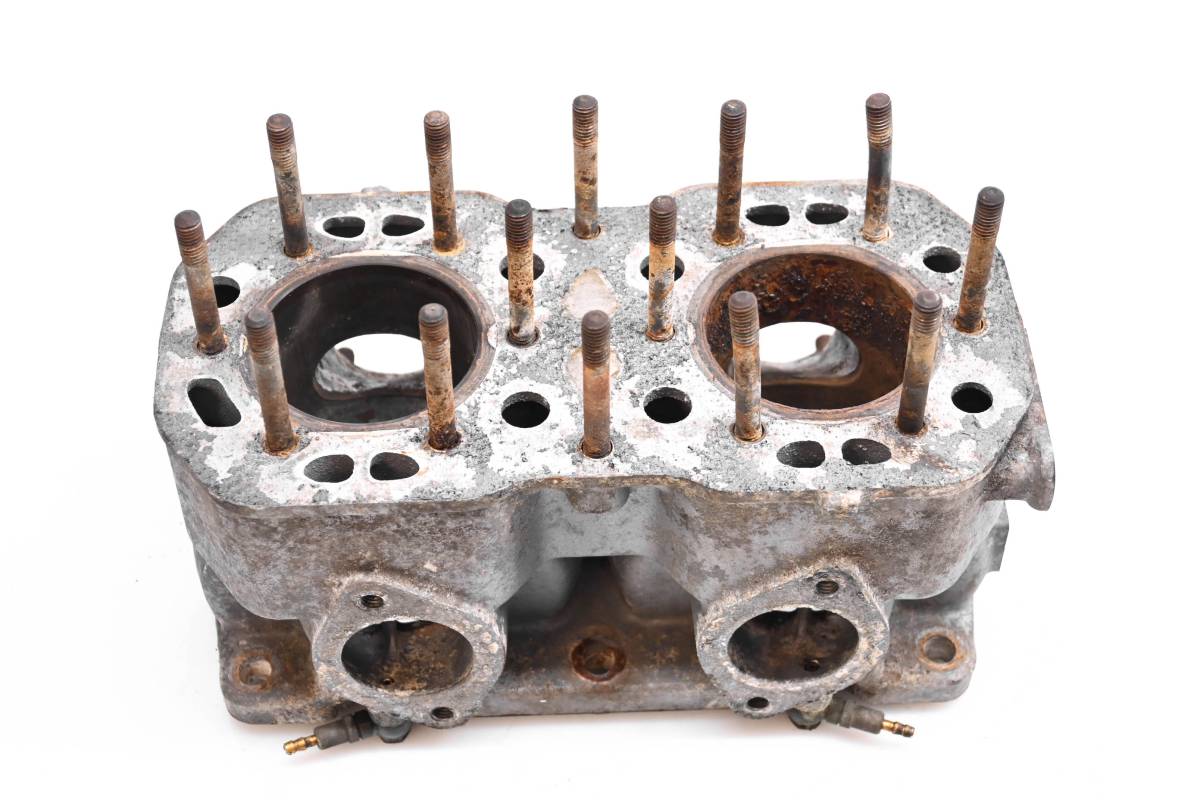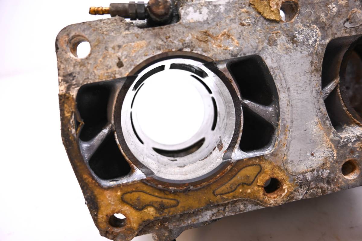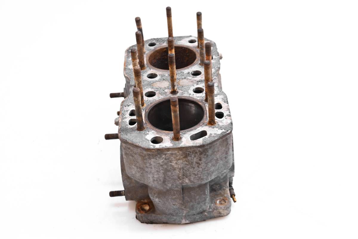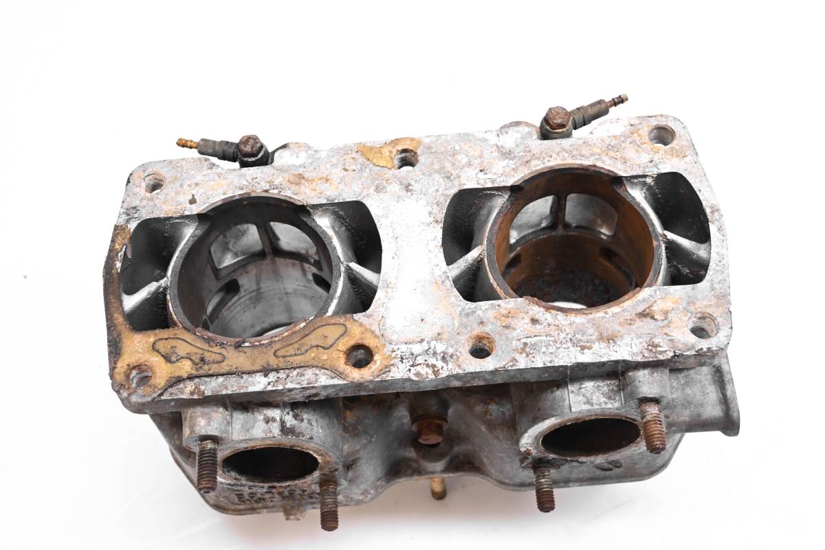 Cylinder is in poor condition. Bore are worn with rust, Needs to be bored over or resleeved. Bores measure 65mm. Has bent studs. Comes as pictured. Was removed from a 1987 Polaris Indy 400 121" with 5906 miles.