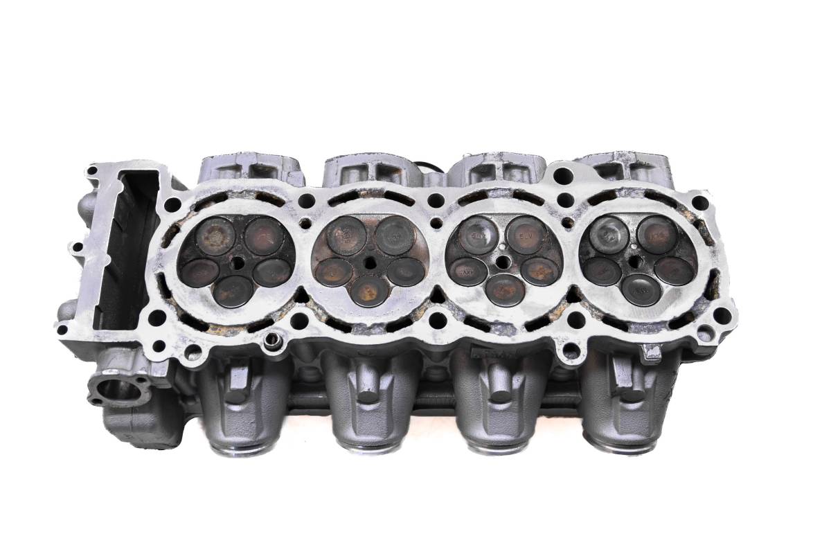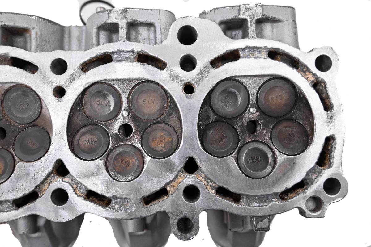 Cylinder head is in poor condition. Valves and springs are included. Cam journals have some light scoring. Combustion chamber has corrosion damage on the surface, and in the water ports. Comes as pictured. Was removed from a 2008 Yamaha VX Deluxe VX110.