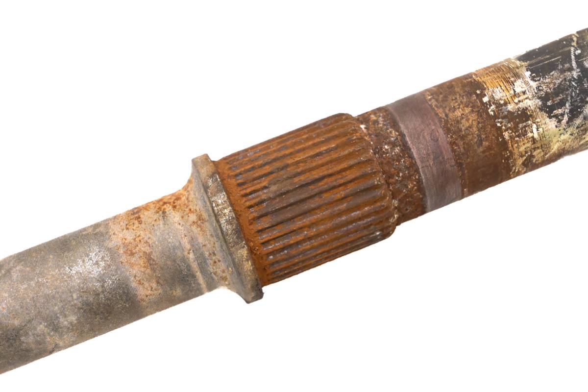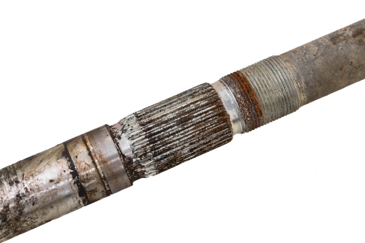 Axle is straight and in good condition. Finish has light wear. Splines and threads are straight. Comes as pictured. Was removed from a 2004 Polaris Predator 50 2x4.