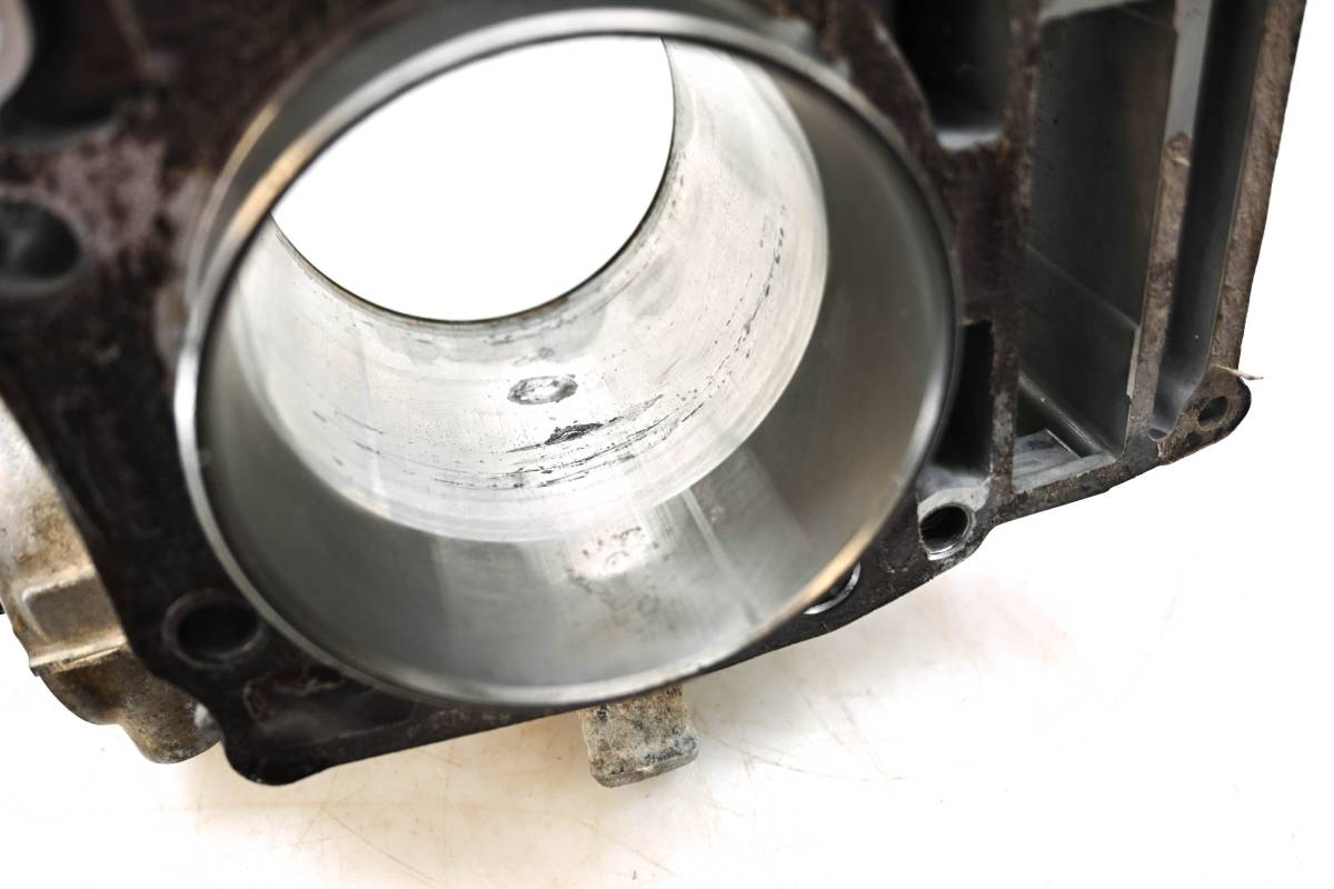 Cylinder is in poor condition. Bore has some light pitting. Needs to be bored over, or resleeved. Bore measures 87.75mm. Comes as pictured. Was removed from a running 2000 Polaris Xpedition 425 4x4.