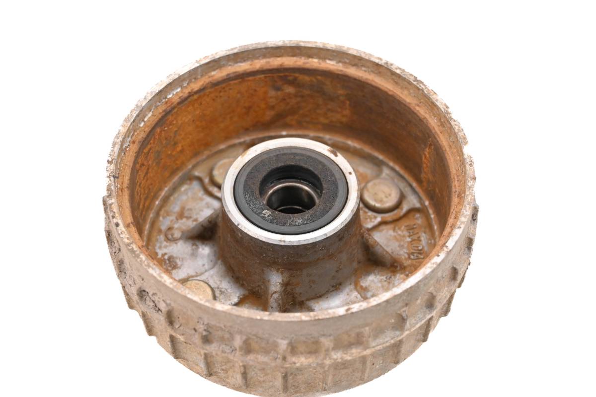 Brake drum is in good working condition with no cracks or repairs. Finish has light wear. Comes as pictured. Was removed from a 1987 Kawasaki Mojave 110E 2x4 KLF110.