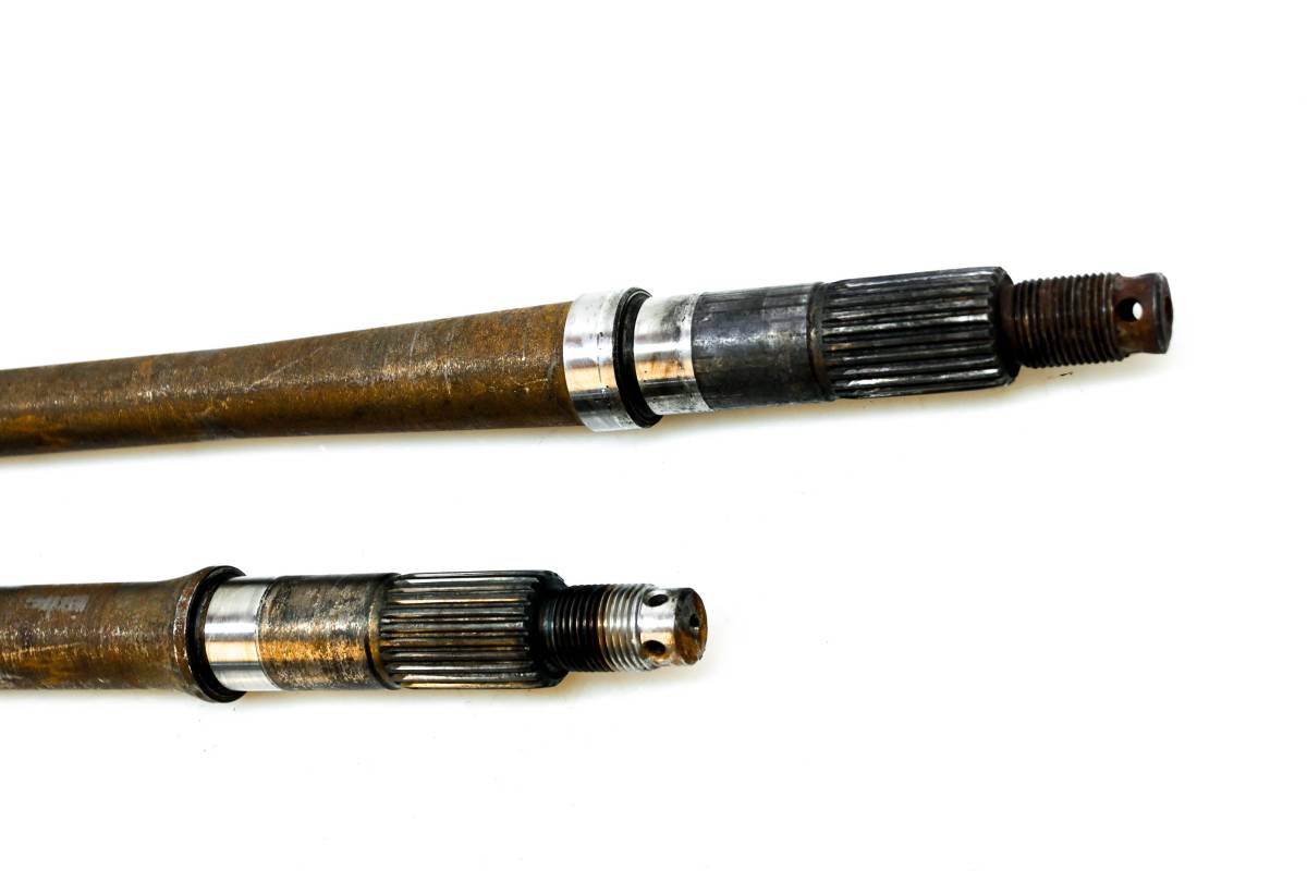 Axles are straight and in good condition. Finish has light wear. Splines and threads are straight. Comes as pictured. Was removed from a running 2004 Kawasaki Bayou 250 2x4 KLF250.