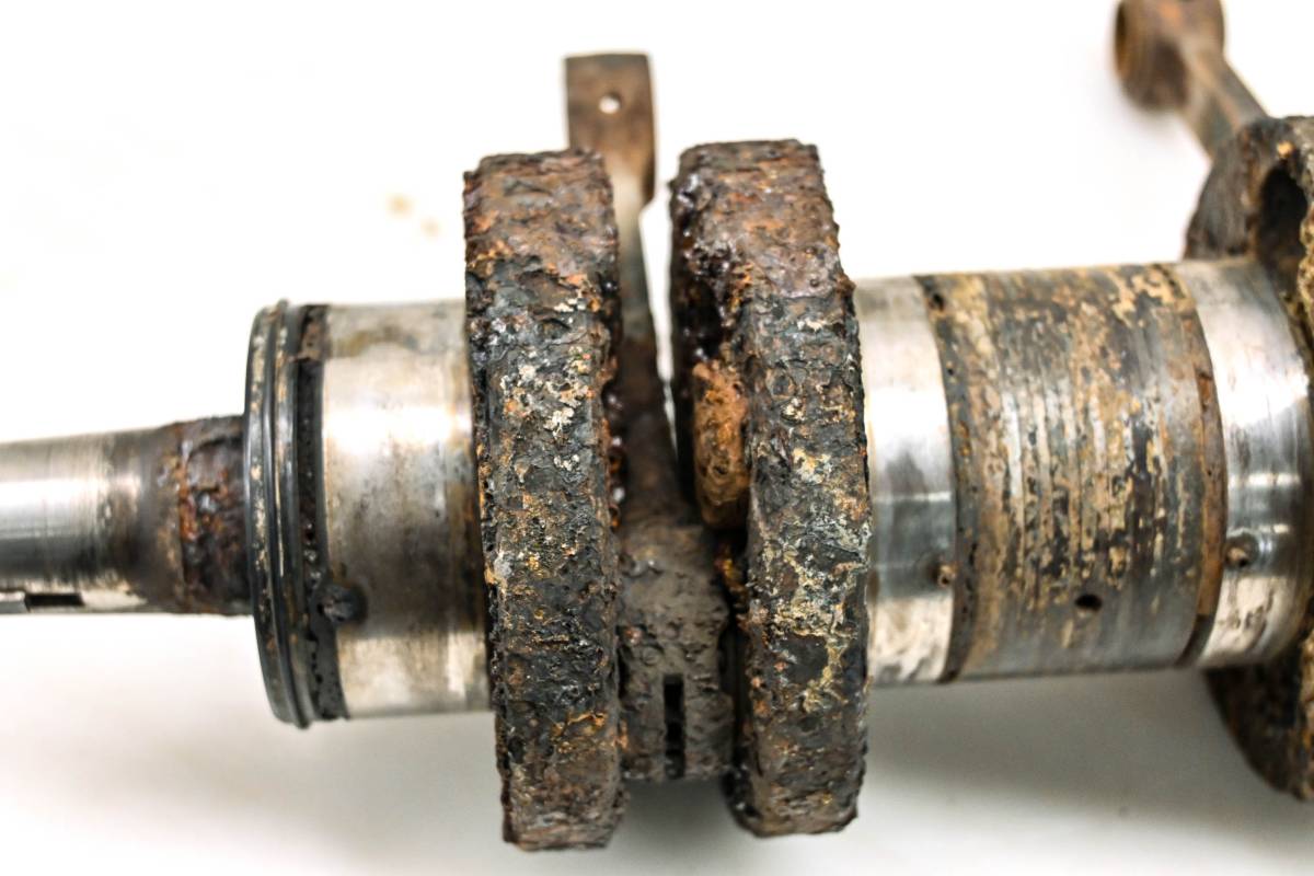 Crank is in poor condition. Journals are smooth, splines and threads are straight. Big end clearance is .330mm. Every bearing needs to be replaced. Comes as pictured. Was removed from a 1978 Polaris TXL 340 121" with 1338 miles.