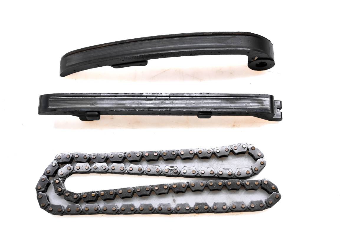 Chain and guides are in good condition. Guides have light wear from chain. Comes as pictured. Was removed from a 2003 Kawasaki Bayou 250 2x4 KLF250.