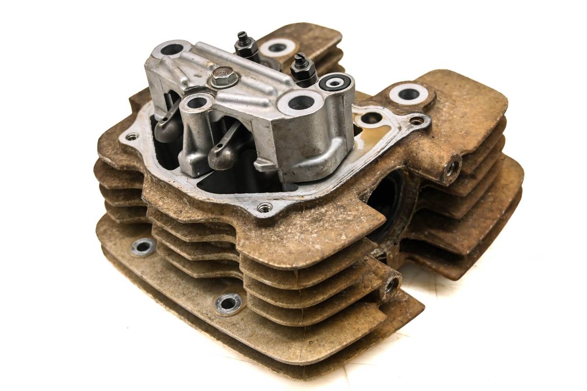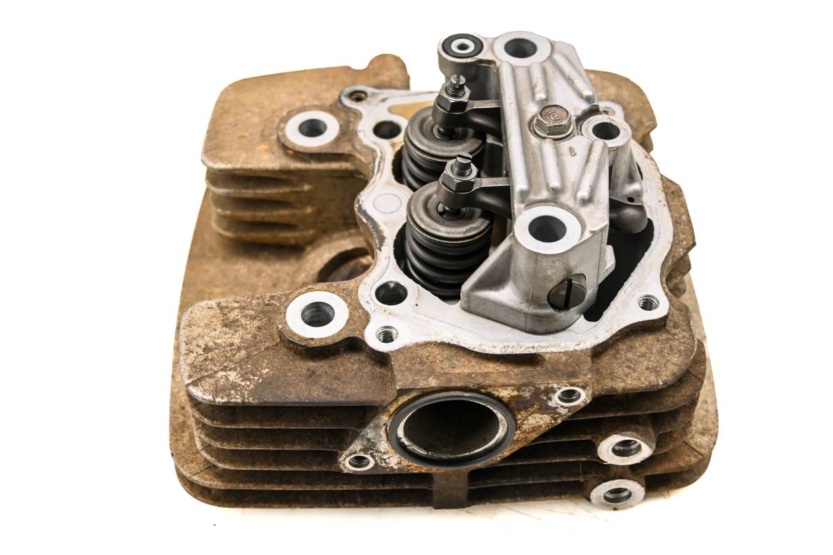 Cylinder head is in good condition. Valves and springs are included. Cam journals are smooth. Combustion chamber has some carbon build up. Comes as pictured. Was removed from a 2002 Honda Rancher 350 4x4 TRX350FE with 4766 miles and 616 hours.