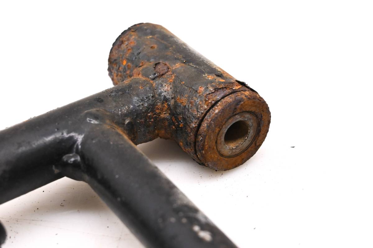 A-Arm is straight and in fair condition. Finish is rusty. Bushings are good. Ball joint boot is ripped. Comes as pictured. Was removed from a 2016 Kawasaki Mule Pro-DXT EPS 4x4 KAF1000 with 7622 miles and 1038.2 hours.