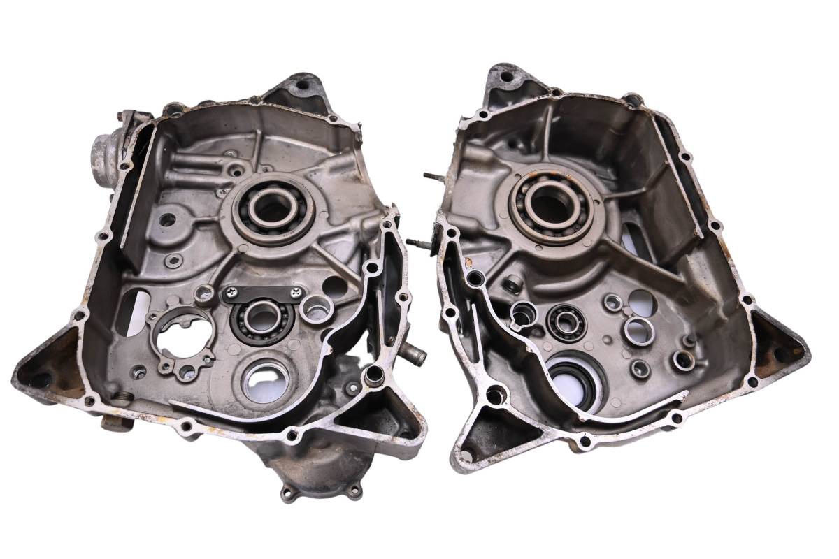 Crankcase is in ok condition. Left side case has been welded, and re taped with new threads, due to chain damage. Finish has light wear. Bearings are good. Comes as pictured. Was removed from a 1986 Suzuki Quadsport 230 2x4 LT230S.