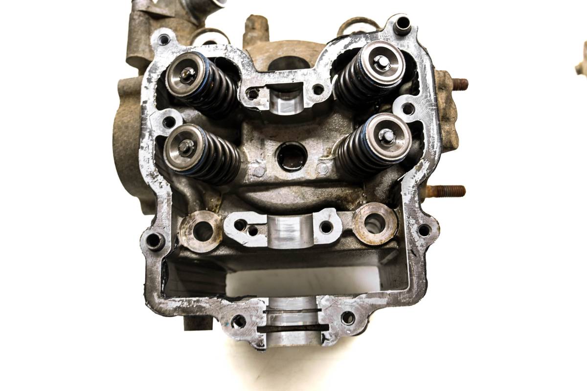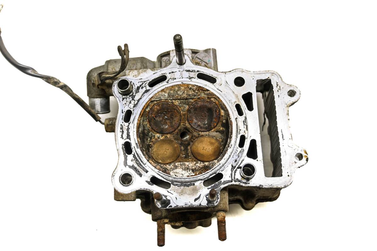 Cylinder head is in good condition. Valves and springs are included. Cam journals are smooth. Combustion chamber has some carbon build up. Comes as pictured. Was removed from a 2006 Suzuki Vinson 500 4x4 Automatic LTA500F with 1397 miles.