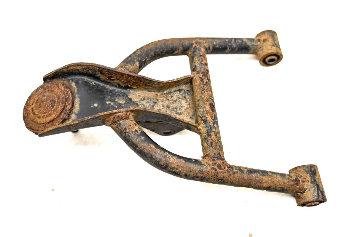 A-Arm is straight and in good condition. Finish has light wear. Bushings are good. Ball joint boot is cracking. Comes as pictured. Was removed from a running 1997 Honda Recon 250 2x4 TRX250.