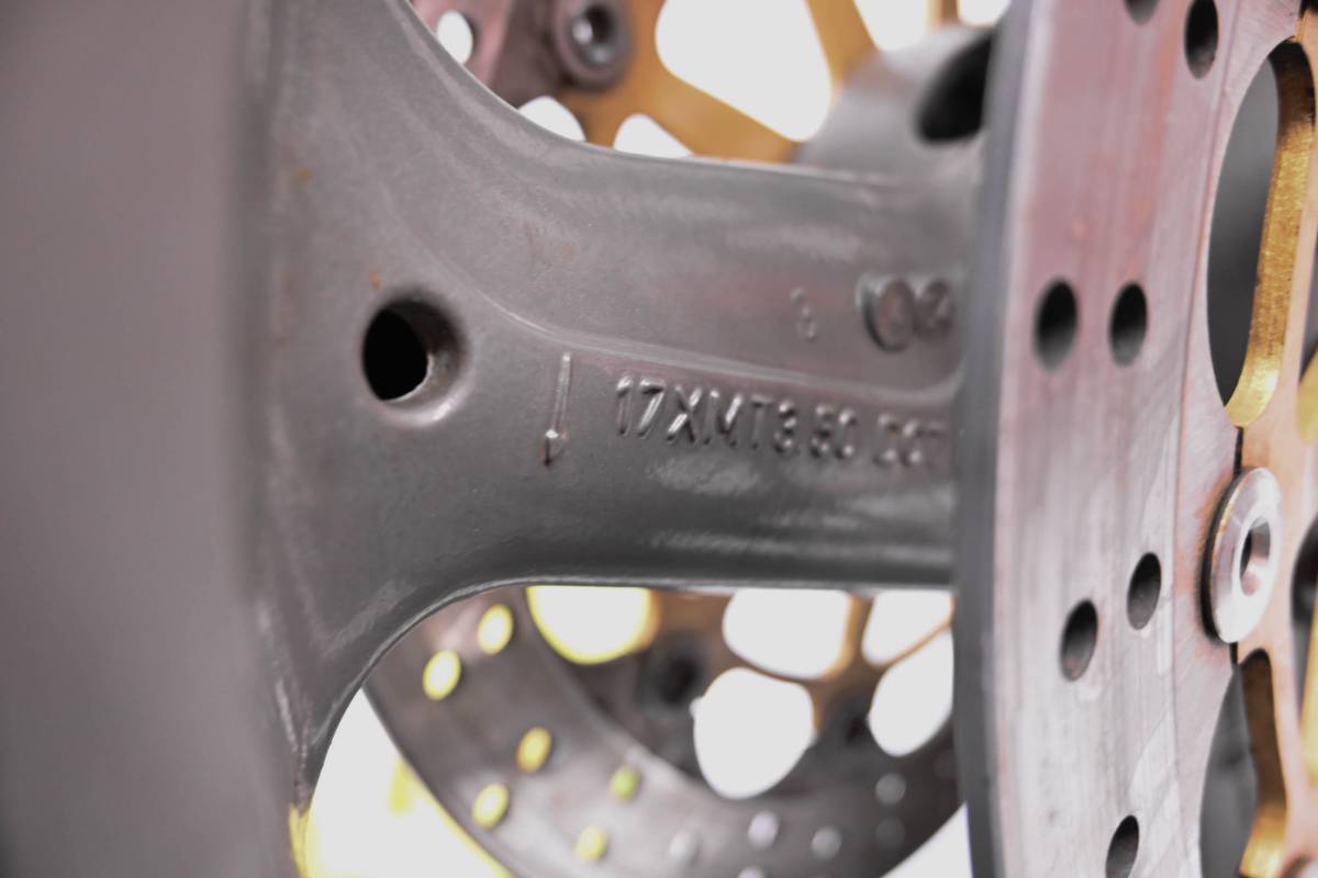 Rim is straight and in good condition. Outside edge has some dings and wear from use. Comes as pictured. Was removed from a 2004 Ducati Monster 800S with 9652 miles.