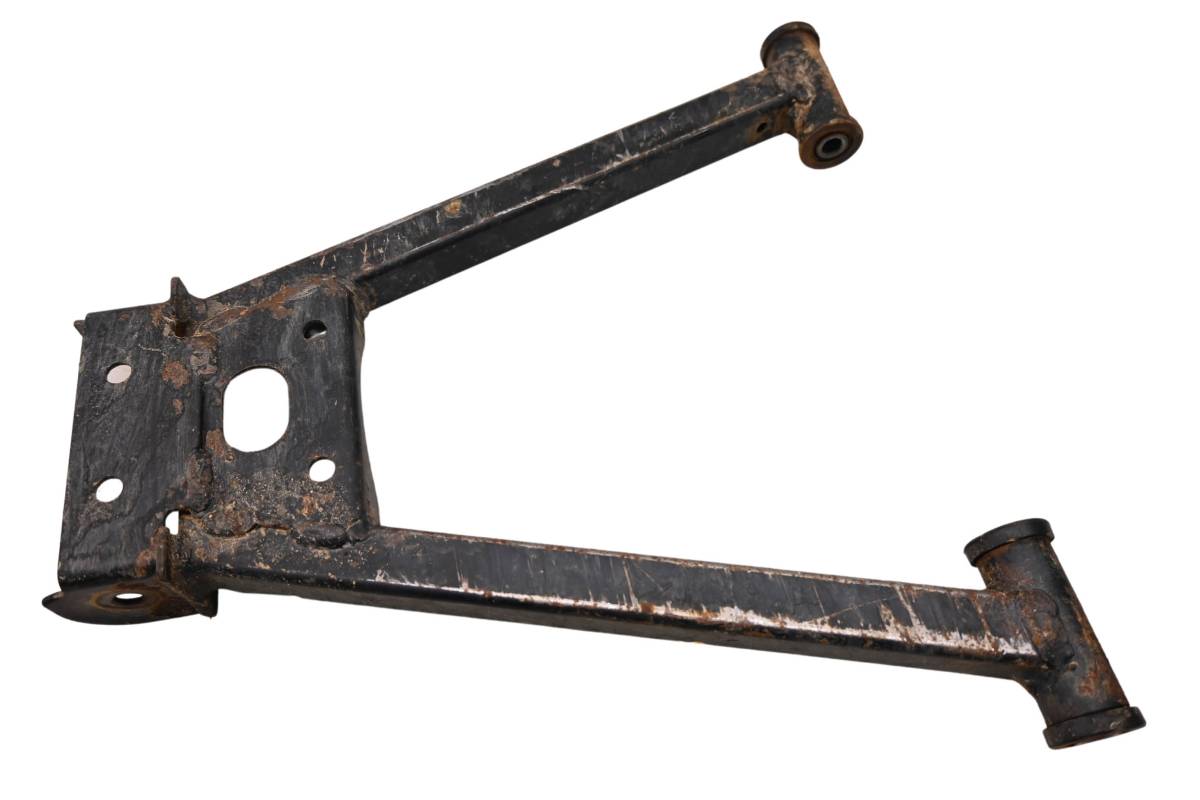 A-Arm is straight and in good condition. Finish has light wear. Bushings are good. Comes as pictured. Was removed from a 2014 Polaris Ranger 400 4x4 and 1517.5 hours.