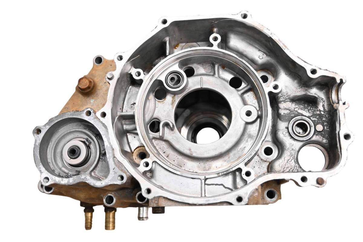Crankcase is in good condition with no cracks or repairs. Finish has light wear. Bearings are good. Comes as pictured. Was removed from a 2014 Polaris Ranger 400 4x4 and 1517.5 hours.
