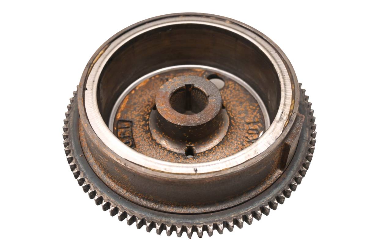 Flywheel is in good working condition. Finish has light wear from use. Comes as pictured. Was removed from a 2001 Polaris Ranger 500 6x6 and 991.8 hours.