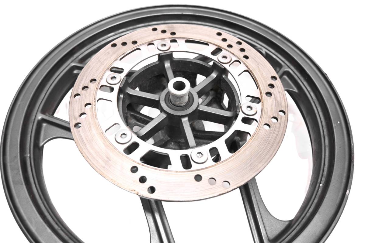 Rim is straight and in good condition. Outside edge has some dings and wear from use. Comes as pictured. Was removed from a 2003 Kawasaki Ninja 250R EX250 with 7215 miles.