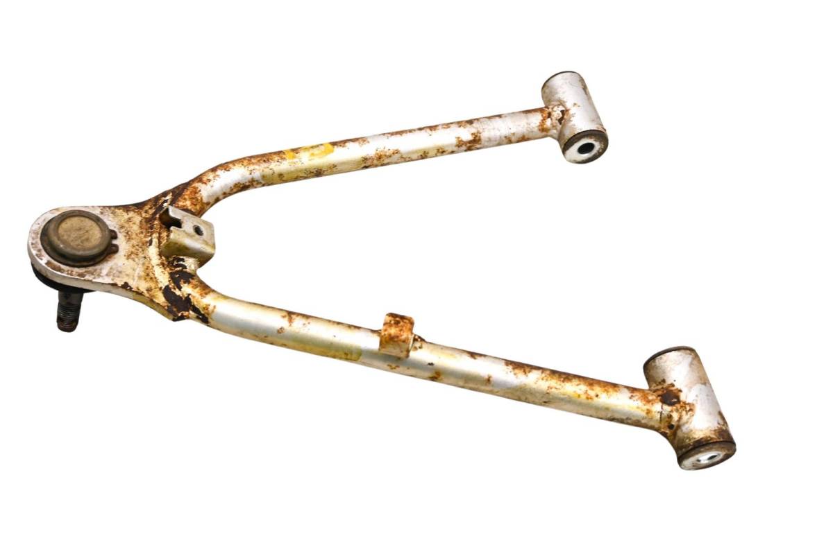 A-Arm is straight and in good condition. Finish has light wear. Bushings are good. Comes as pictured. Was removed from a 2003 Kawasaki KFX400 LTZ400.