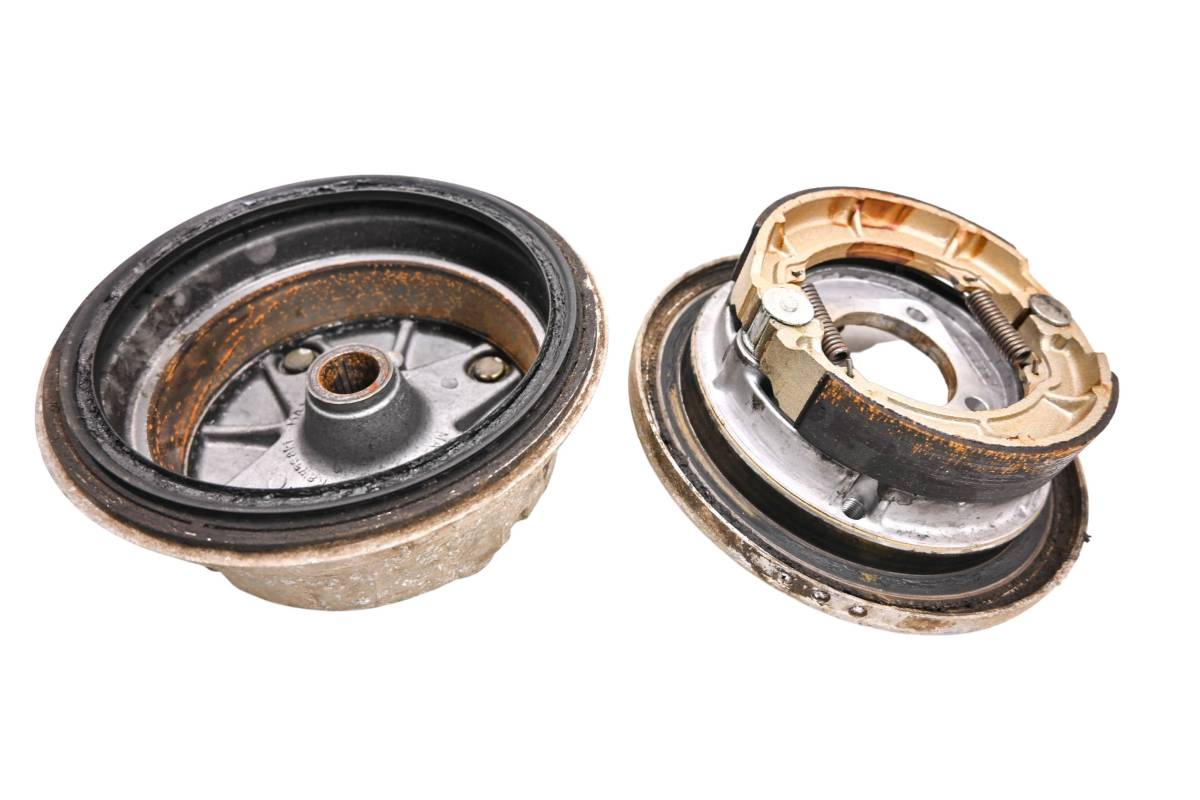 Brake drum is in good working condition with no cracks or repairs. Finish has light wear. Comes as pictured. Was removed from a 2001 Kawasaki Bayou 220 2x4 KLF220.
