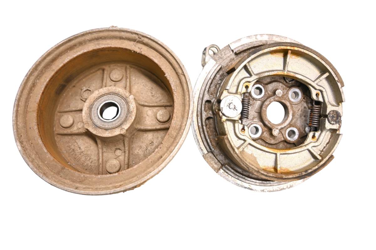 Brake drum is in good working condition with no cracks or repairs. Finish has light wear. Comes as pictured. Was removed from a 2001 Kawasaki Bayou 220 2x4 KLF220.
