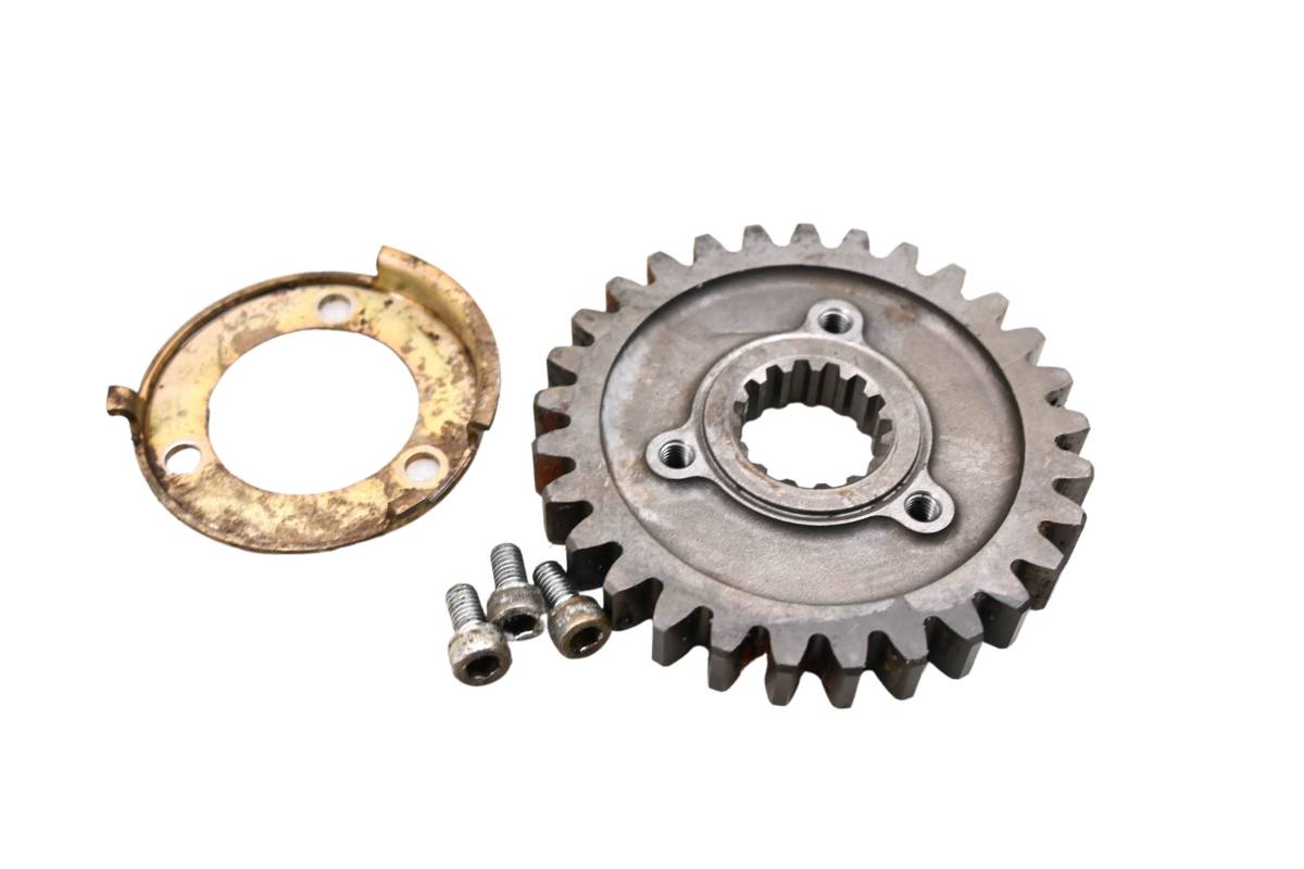 Gears are in poor condition. Teeth have surface rust. Dog gear has some damage. Splines are straight. Comes as pictured. Was removed from a 2002 Kawasaki Prairie 650 4x4 KVF650.