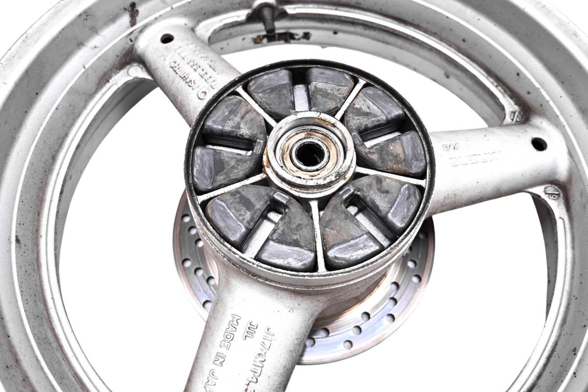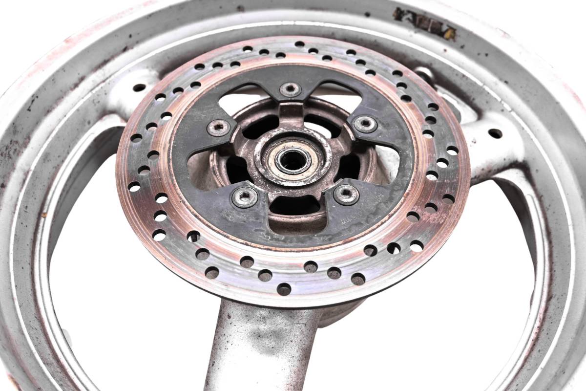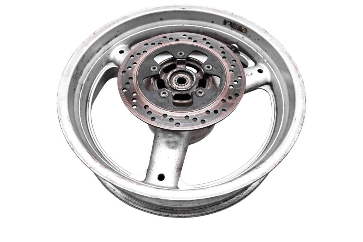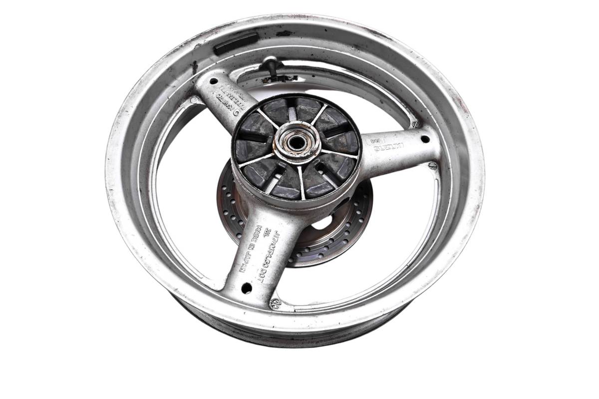 Rim is straight and in good condition. Outside edge has some dings and wear from use. Comes as pictured. Was removed from a 2000 Suzuki Katana 600 GSX600F.