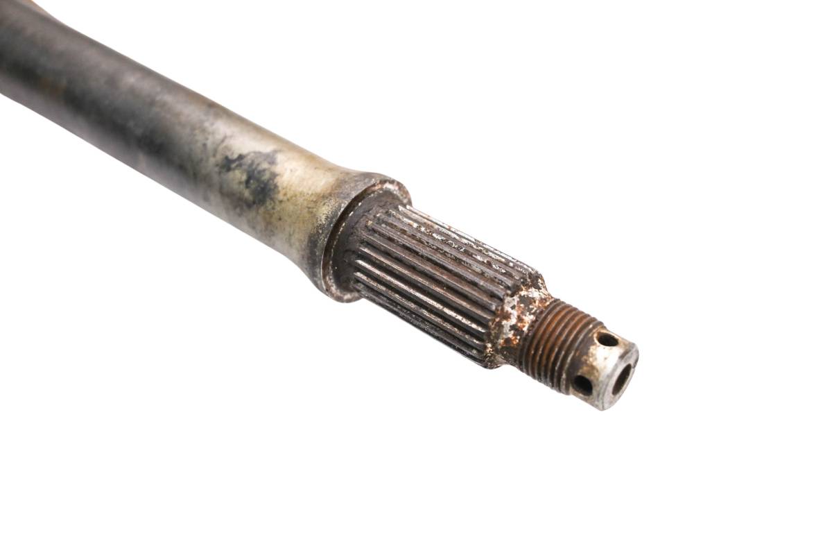 Axle is straight and in good condition. Finish has light wear. Splines and threads are straight. Comes as pictured. Was removed from a 2004 Honda TRX400EX.
